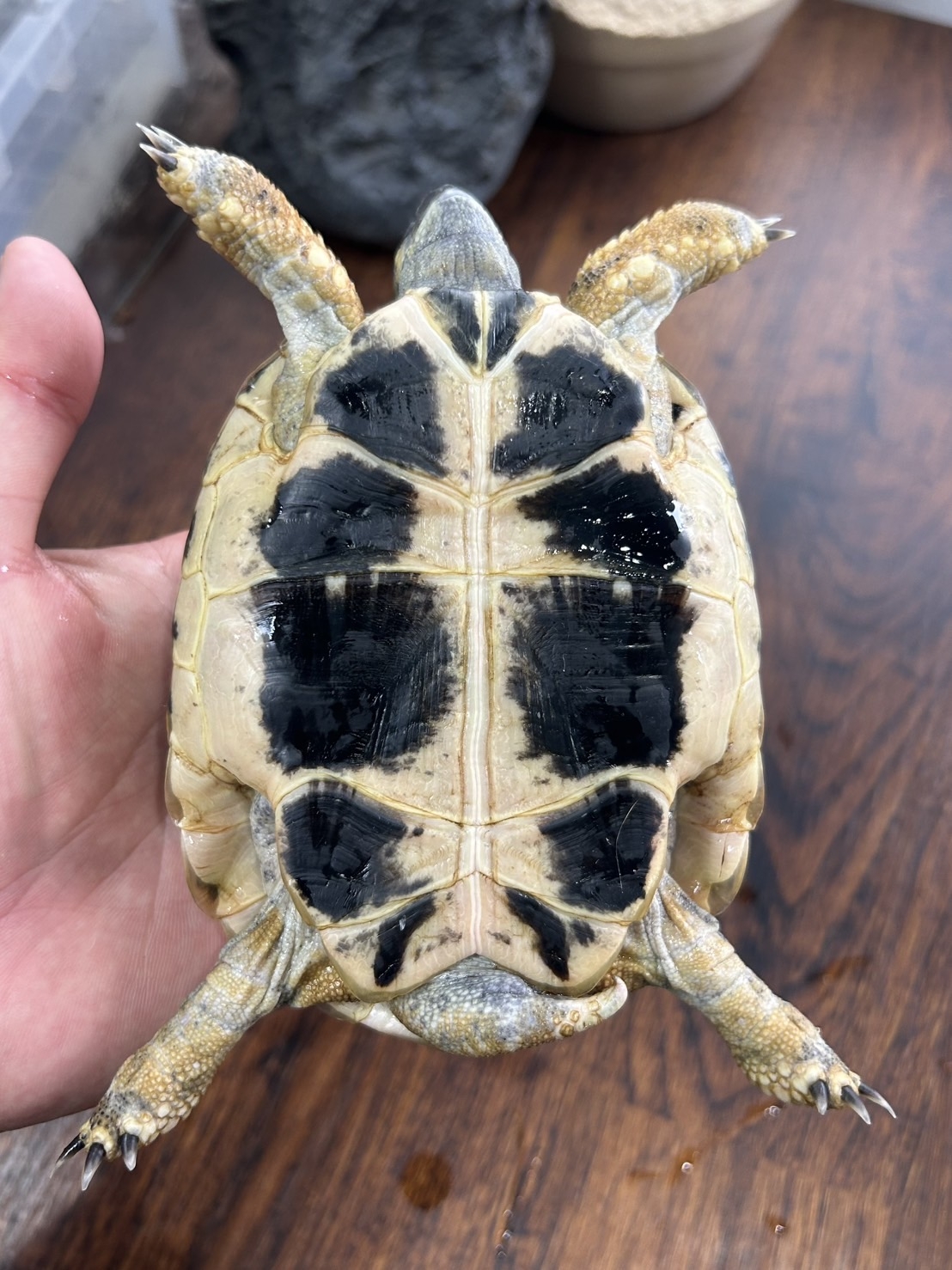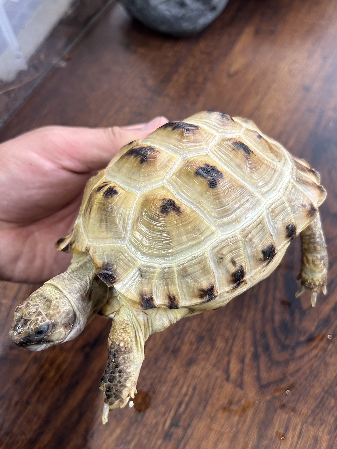 よく慣れていてとても綺麗なヒガシヘルマンリクガメです!